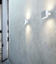 Aplique de pared Tight Light emisión de luz directa/indirecta. Cuerpo en aluminio extruido pintado. Filtros laterales en aluminio fundido a presión retomado a 45°sobre control numérico para tener un perfecto acoplamiento con el cuerpo de la lámpara. Difusores en PMMA moldeado por inyección con acabado fotograbado. Enganche de pared en PA66 moldeado por inyección. Alimentador multitensión integrado en el cuerpo. |