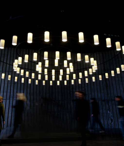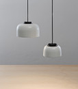 Lámparas de pantallas intercambiables, desde la manual porcelana blanca de Sargadelos al latón o el vidrio opal blanco, que aloja una ingeniosa cápsula LED y sin embargo ilumina con la calidez del cirio. La combinación de sus múltiples estructuras permite la generación de gran variedad de formatos.