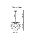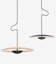 Exuberante, también cuando está apagada, la riqueza de luz que emite la lámpara Discocó procura una iluminación directa descendente y, al mismo tiempo, un efectista juego de luces y suaves sombreados.