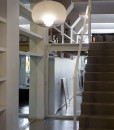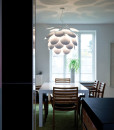 Con tecnología LED, comprende dos tamaños de suspensión, una versión de pie y otra de sobremesa, a escoger entre los acabados del difusor en roble o wengué.