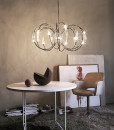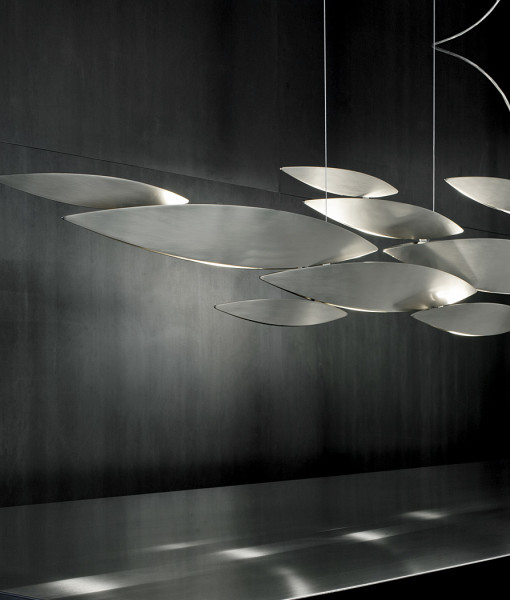 I Luci Argentati atrae de la naturaleza para crear una luz caprichosa y moderna suspensión recordando un banco de peces que se lanzan con agua dulce, crea una luminiscencia fascinante. Gracia a sus sistema modular I Luci Argentati es personalizable y se pueden combinar en configuraciones personalizables. Acabados en níquel cepillado o blanco. Diseño Dodo Arslan