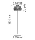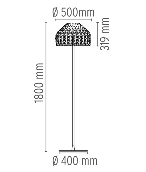 Lámpara de pie Tatou F de luz difusa. Difusor externo de policarbonato – Difusor interno de policarbonato opal estampado por inyección. Asta y base de apoyo de acero pintado. |