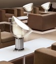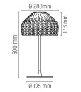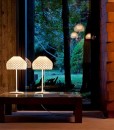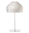 Lámpara de sobremesa Tatou T1 de luz difusa. Difusor externo de policarbonato. Difusor interno de policarbonato opal estampado por inyección. Asta y base de apoyo de acero pintado. |