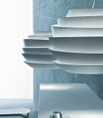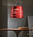Lámpara de suspensión Le Soleil realizada en policarbonato, se encuentra disponible en tres colores: blanco, rojo y aguamarina. La utilización de un material que no deja pasar la luz ayuda a crear el especial efecto luminoso de Le Soleil, con haces de luz proyectados hacia arriba y con una iluminación directa hacia abajo.