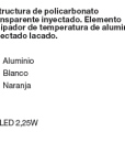 Zoo es un aplique realizado en policarbonato inyectado translúcido que le confiere una estética moderna y ligera. El difusor rotatorio permite dirigir el haz de luz iluminando de forma directa o indirecta. La fuente de luz utilizada está compuesta por 4 LEDs de 2,25W. Disponible en aluminio, blanco y naranja.